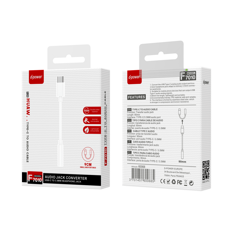 Aperçu rapide Référence: F7001 Marque: d-power Câble Type C 1,2m - Blanc Commentaire(s): 0 Détails En stock
